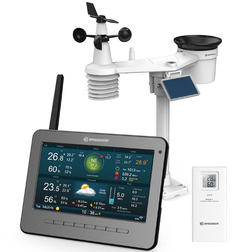 Naprave za spremljanje vremena doma ali na terenu – merijo temperaturo, vlago, tlak in napovedujejo vremenske razmere, naprednejši modeli pa tudi veter, padavine in več.